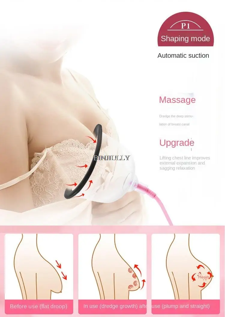 Two modes for breast enhancement: P1 shaping mode (automatic suction and release) P2 breast enhancement mode (gathering and shaping)