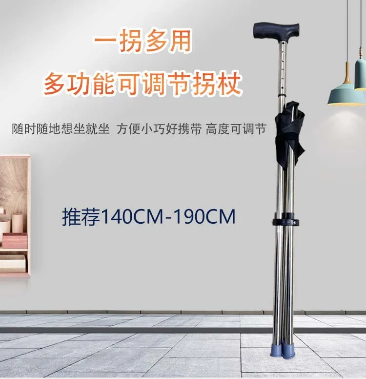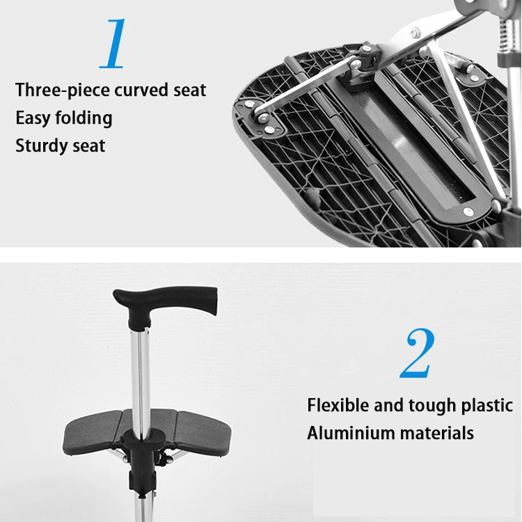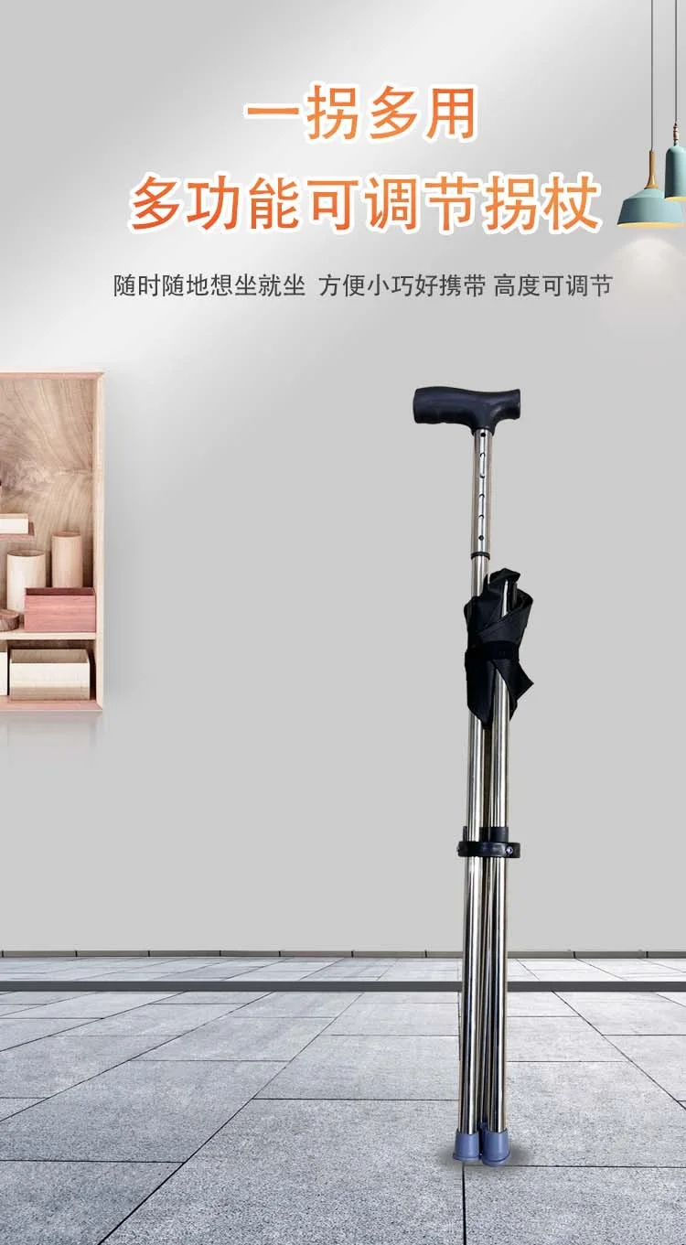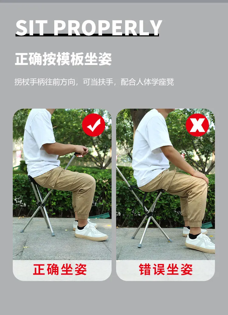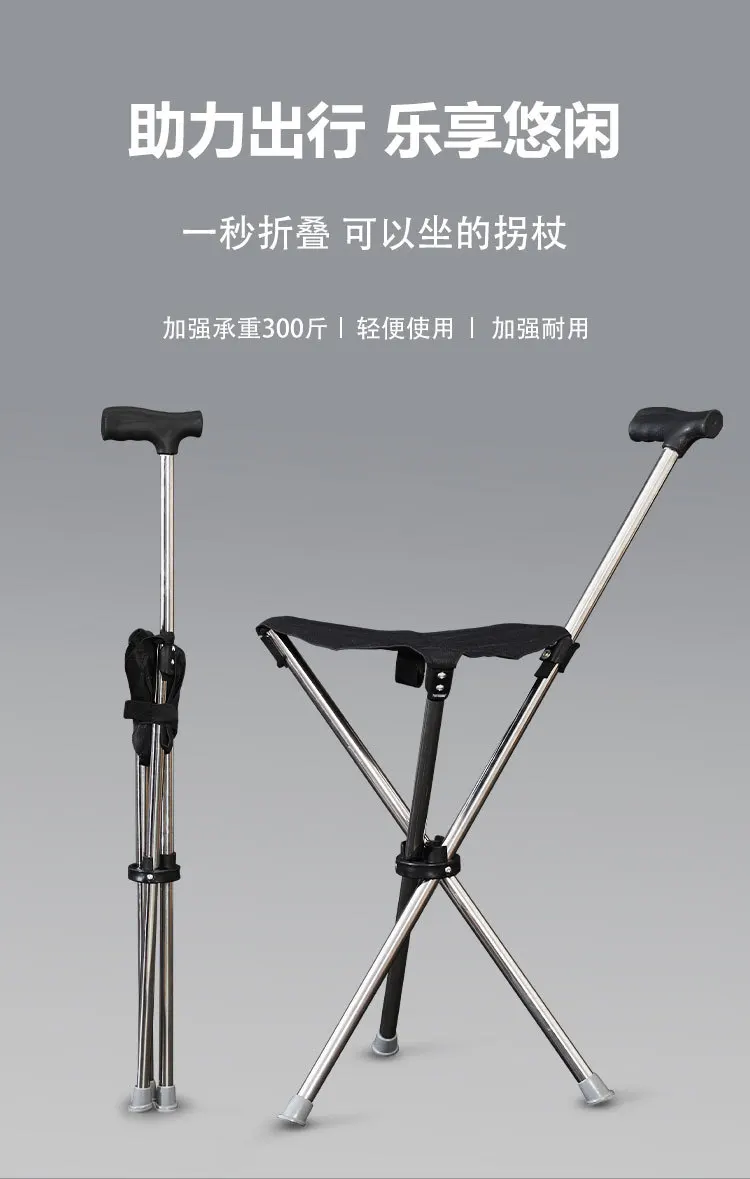 4. A rod for dual use, ergonomic design, both crutch and seat. Old people travel good helper!