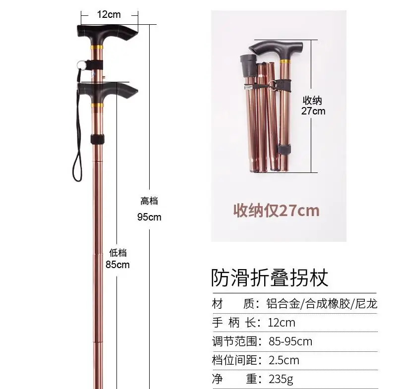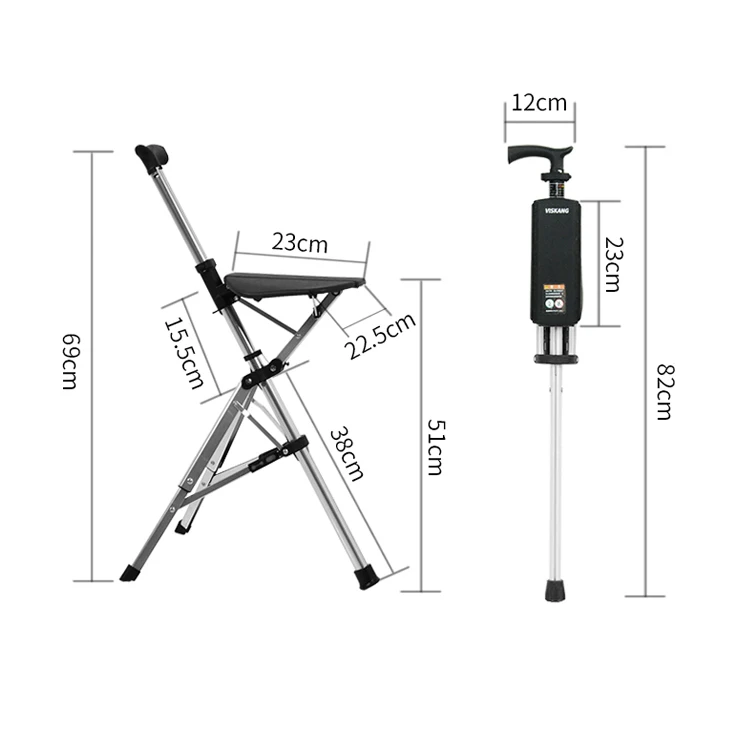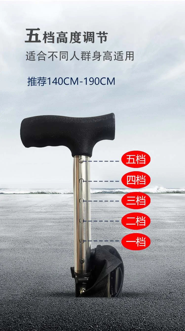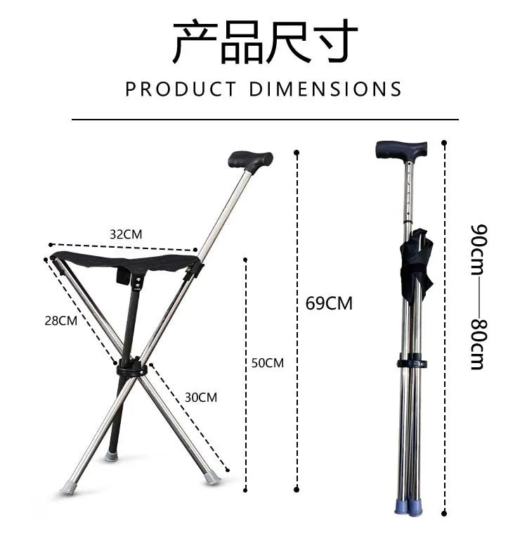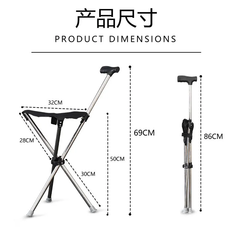 4. A rod for dual use, ergonomic design, both crutch and seat. Old people travel good helper!